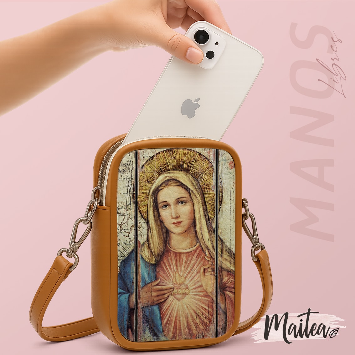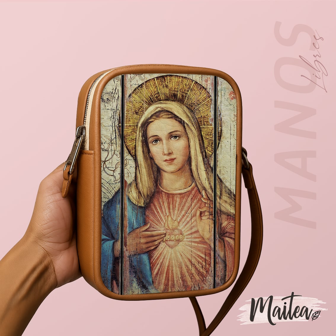 Sus diseños y motivos católicos inspiran devoción y protección donde vayas, reflejando la esencia de tu fe. Es un bolso pequeño, ideal para llevar tus esenciales con estilo; es práctico y elegante, cuenta con espacio perfecto para tu celular, documentos, gafas y llaves. Su diseño artesanal con acabados de marroquinería impecables lo hacen una pieza única, hecho para acompañarte con gracia y propósito cada día. Regalos novedosos con estilo católico. Cuenta con cargadera ajustable para tu mayor comodidad. ¡Lleva tu fe siempre!
