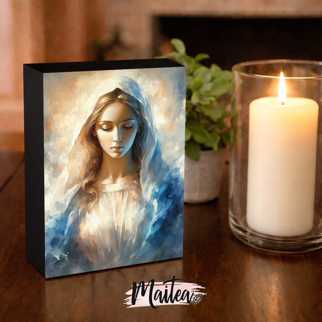 Cuadros religiosos de alta calidad, impresos en lienzos de 100% algodón con tintas ecológicas y duraderas. Embellece tu espacio con imágenes religiosas que inspiran fe y devoción. Retablo en lienzo de Retablo El Dulce Nombre de María.