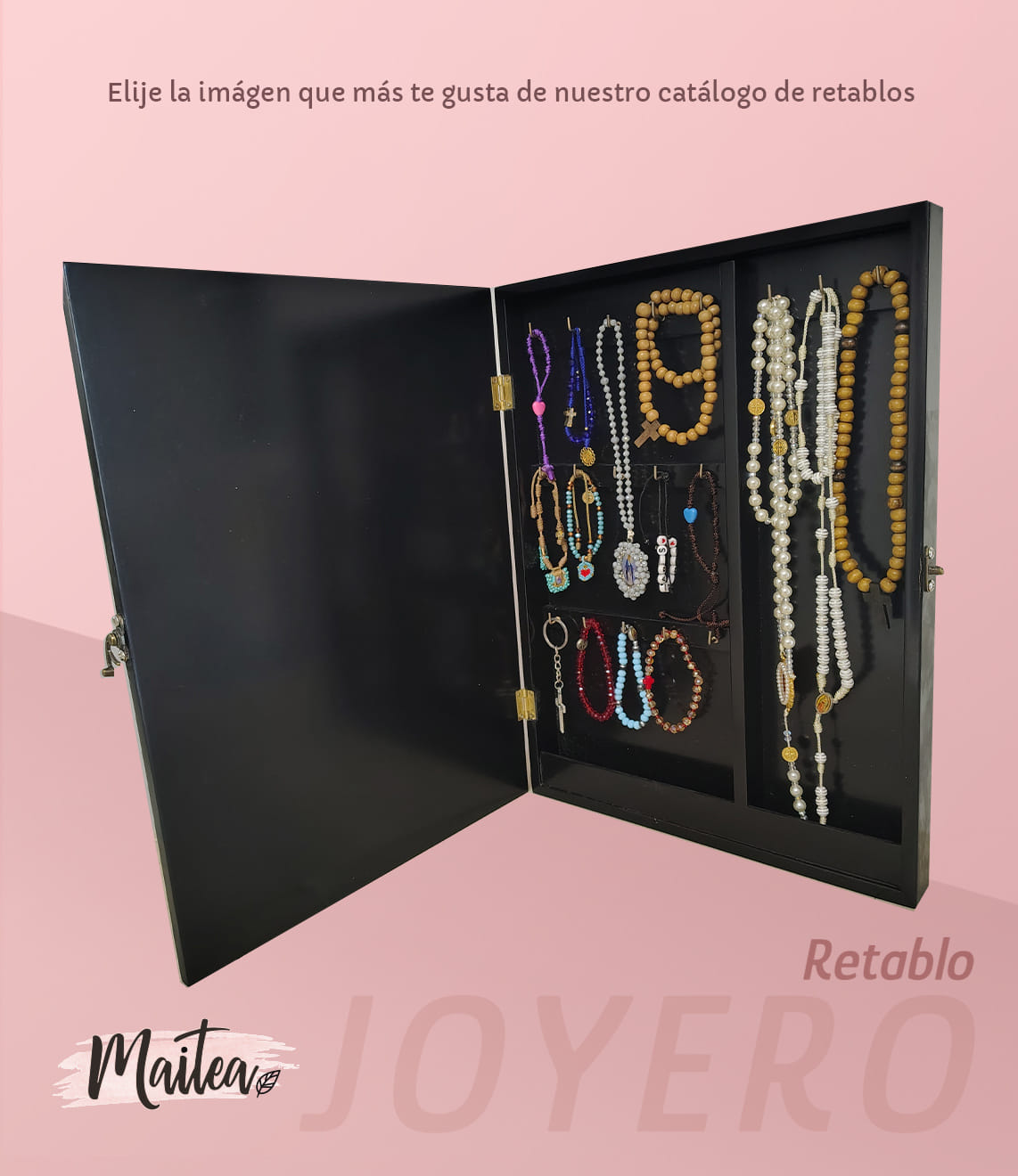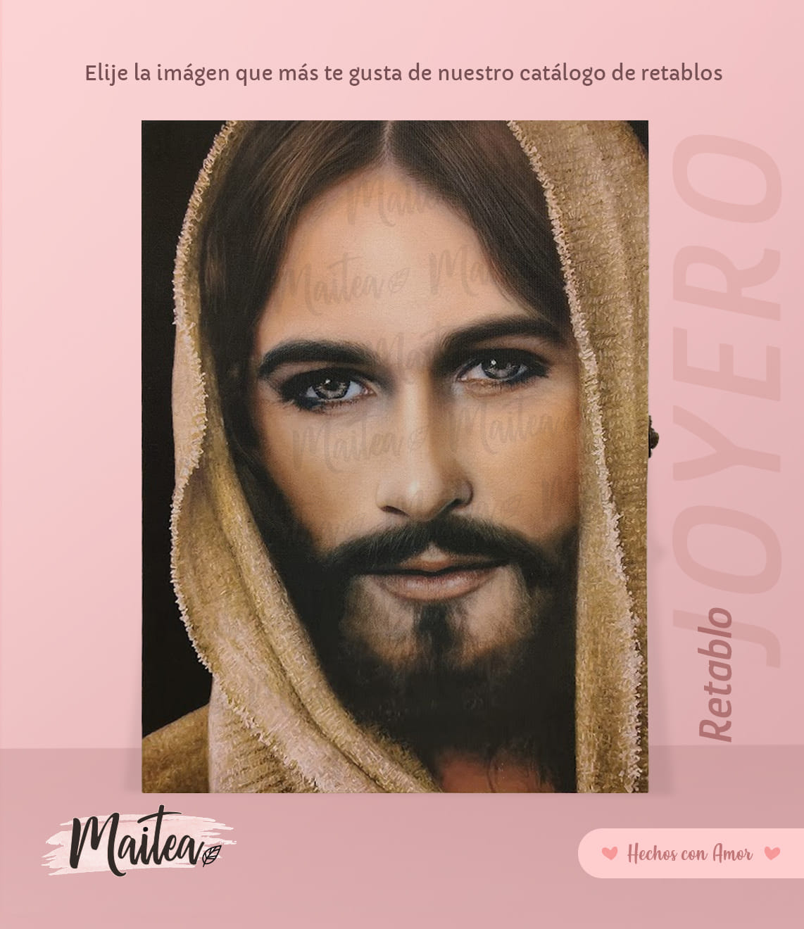 Este retablo religioso en lienzo es una pieza única que une arte sagrado y funcionalidad. Su exterior presenta una imagen religiosa impresa en lienzo de alta calidad, perfecta para decorar espacios de oración, habitaciones o altares. En su interior, cuenta con un compartimento oculto ideal para guardar rosarios, pulseras, medallas, escapularios o accesorios religiosos. Elaborado con acabados finos y detalles artesanales.